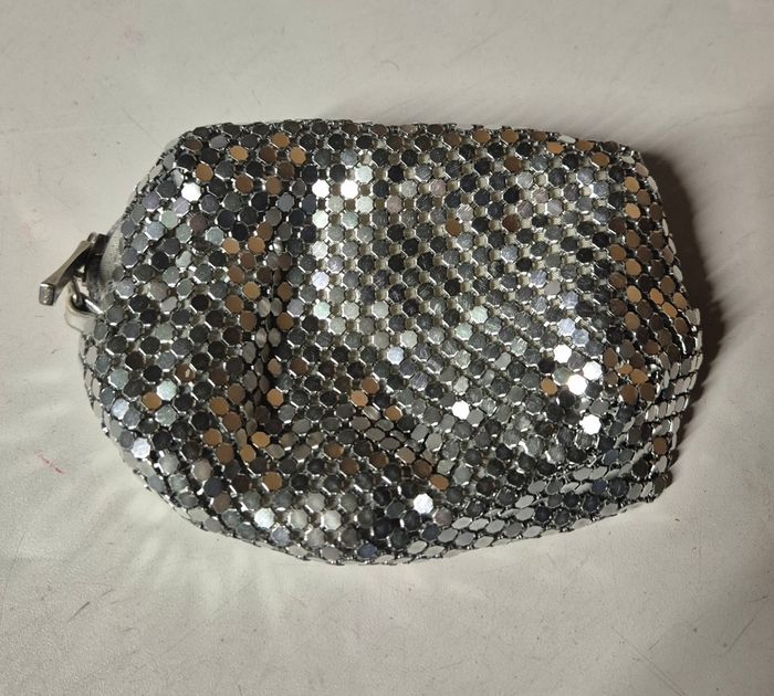 Élégante pochette / porte monnaie vintage en sequins argentés, mesurant 10 cm de hauteur sur 13 cm de largeur. Son design scintillant en maillage métallique hexagonal offre un effet miroir captivant, idéal pour les soirées, les événements festifs ou comme accessoire rétro chic. Fermeture zippée solide, intérieur doublé avec poche intérieure pratique. Parfaite pour ranger monnaie, bijoux ou petits essentiels avec style. #pochettevintage #sequinsargentés #accessoireretro #modevintage #portemonnaie #vintaeaddict #petiteochette #vintagefashion #accessoirebrillant #collectionvintage #vintagelover #pochettefestive #vintagechic #pochettemaille #portemonnaiemaille