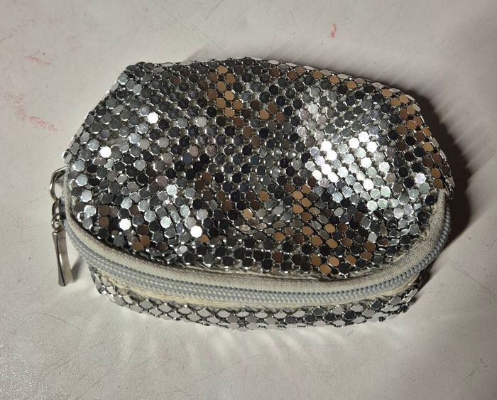 Pochette porte monnaie vintage à sequins argentés  rétro - photo numéro 1