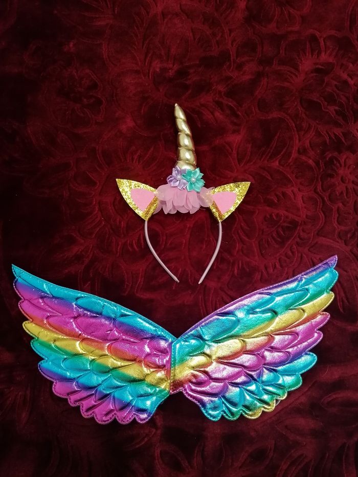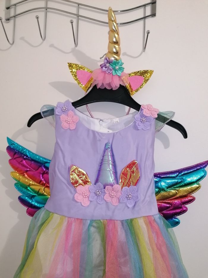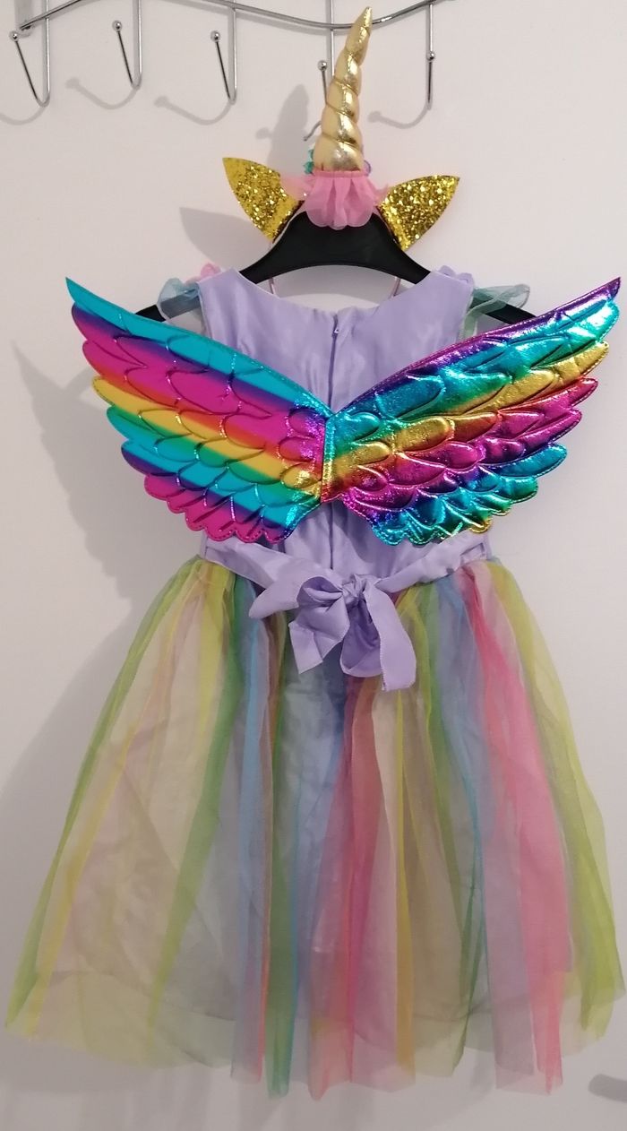 Deguisement licorne robe+ailes+diademe Taille 3-4ans Comme neuf