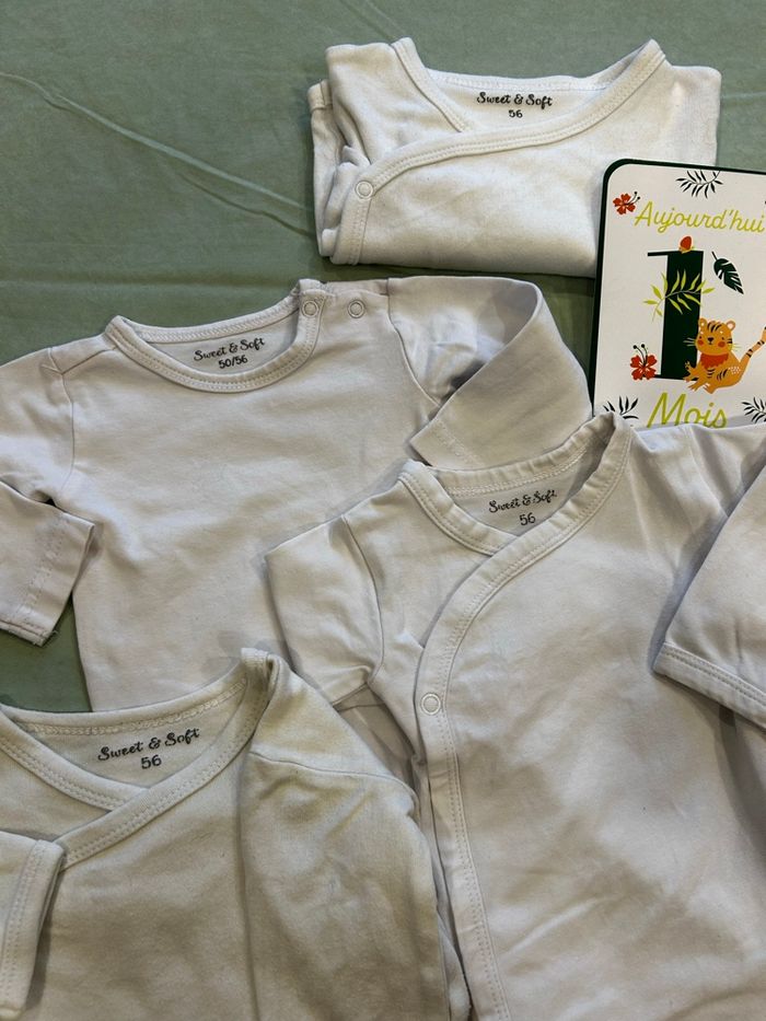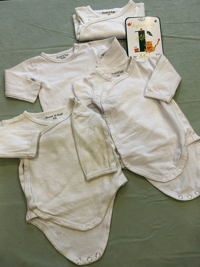 Lot de 3 bodies (1 à enfiler et 2 avec ouverture sur le côté ) 2blanc et 1blanc cassé taille 56
