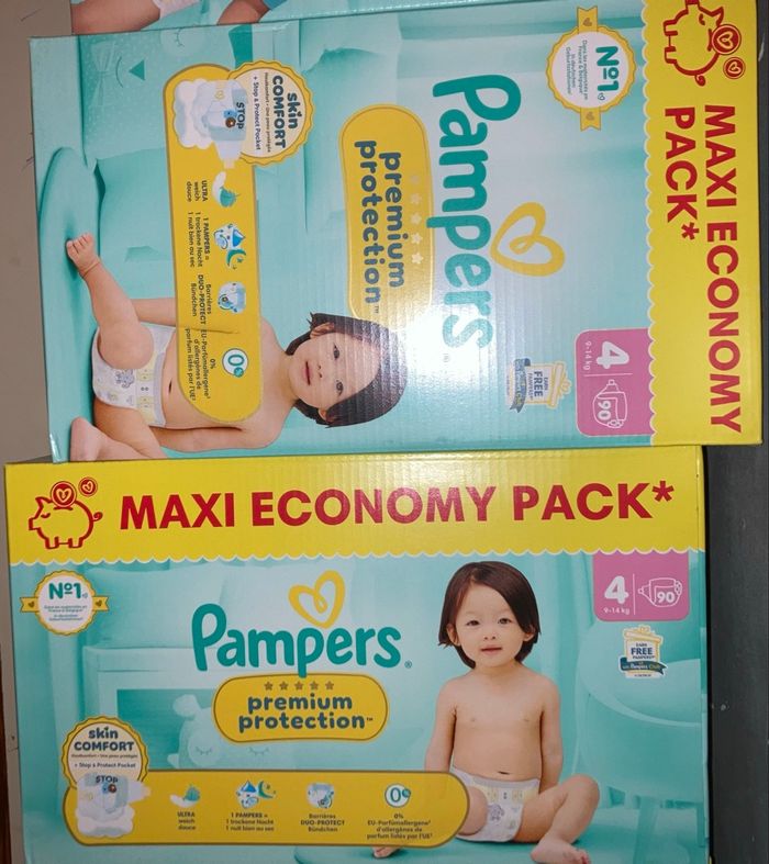Couches Pampers, premium protection T4, les deux cartons de couches