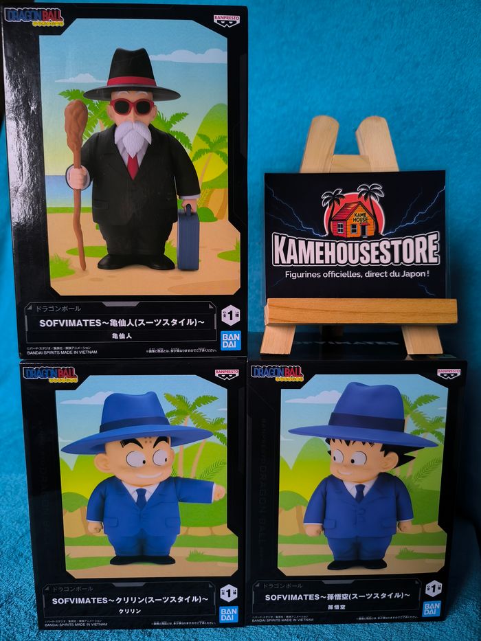 Lot de 3 Figurines Kame Sennin, Krillin & Son Goku – Dragon Ball – Sofvimates – Banpresto – Officielles Import Japon Je vends ce superbe lot de 3 figurines Sofvimates représentant Kame Sennin, Krillin et Son Goku en version “suit style”, issues de la gamme SOFVIMATES – Dragon Ball, produites par Bandai Spirits / Banpresto. Des figurines originales au style fun et élégant, avec une finition soignée et un design très réussi, parfait pour une collection différente et stylée 🕴️🐢🔥 🔸 Produits 100% officiels – Import direct du Japon 🔸 Neuves, jamais ouvertes, boîtes scellées 🔸 Gamme : Sofvimates 🔸 Série : Dragon Ball 🔸 Personnages : Kamesennin, Krillin & Son Goku 🔸 Fabricant : Bandai Spirits / Banpresto 🔸 Taille : environ Krillin et Son Goku 15 cm Kame Sennin 22 cm 🔸 Matière : PVC / ABS ⚠️ Boîtes en très bon état, possibles micro-traces ou légères marques liées au transport. ✅ Remise en main propre possible 📦 Frais de port à la charge de l’acheteur 📬 Envoi rapide et soigné, emballage renforcé 🎁 Idéal pour les fans et collectionneurs de Dragon Ball, un trio original et peu commun qui apporte une vraie touche de style à une collection ! 📩 N’hésitez pas à me contacter pour toute question ou photo supplémentaire. #DragonBall #DB #Kamesennin #MasterRoshi #Krillin #SonGoku #Sofvimates #Banpresto #BandaiSpirits #FigurineDB #AnimeFigures #Manga #CollectionDB #JapanExclusive #ImportJapon #DBCollectors #DragonBallFigure