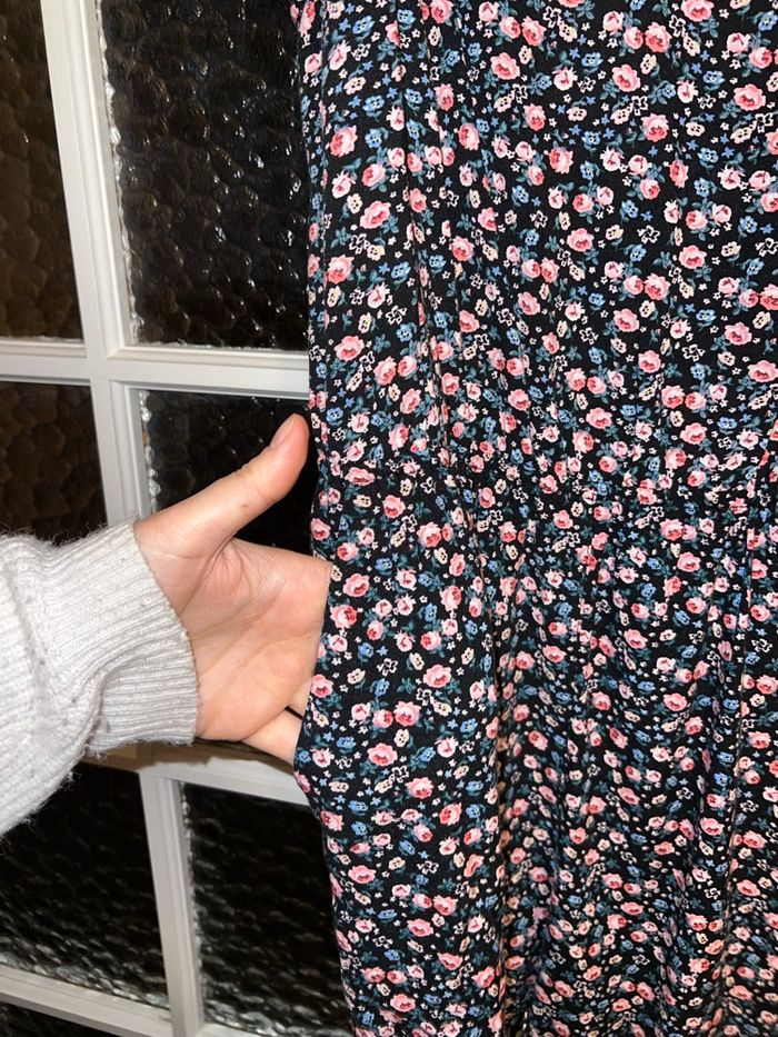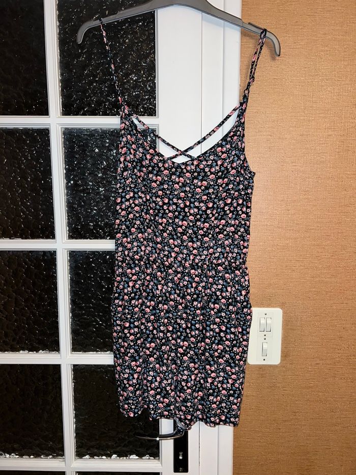 Combi short fleurie, dos avec bretelles croisées, et poches! En très bon état. Matière fine.