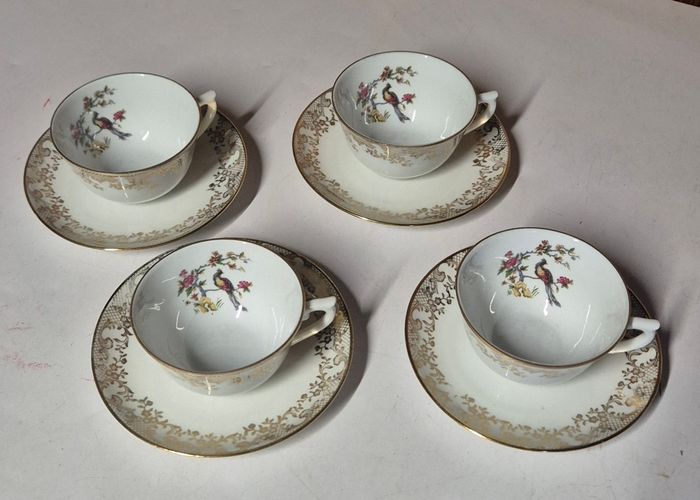 Lot de 4 tasses et soucoupes vintage FD Chauvigny porcelaine française sous tasses - photo numéro 1