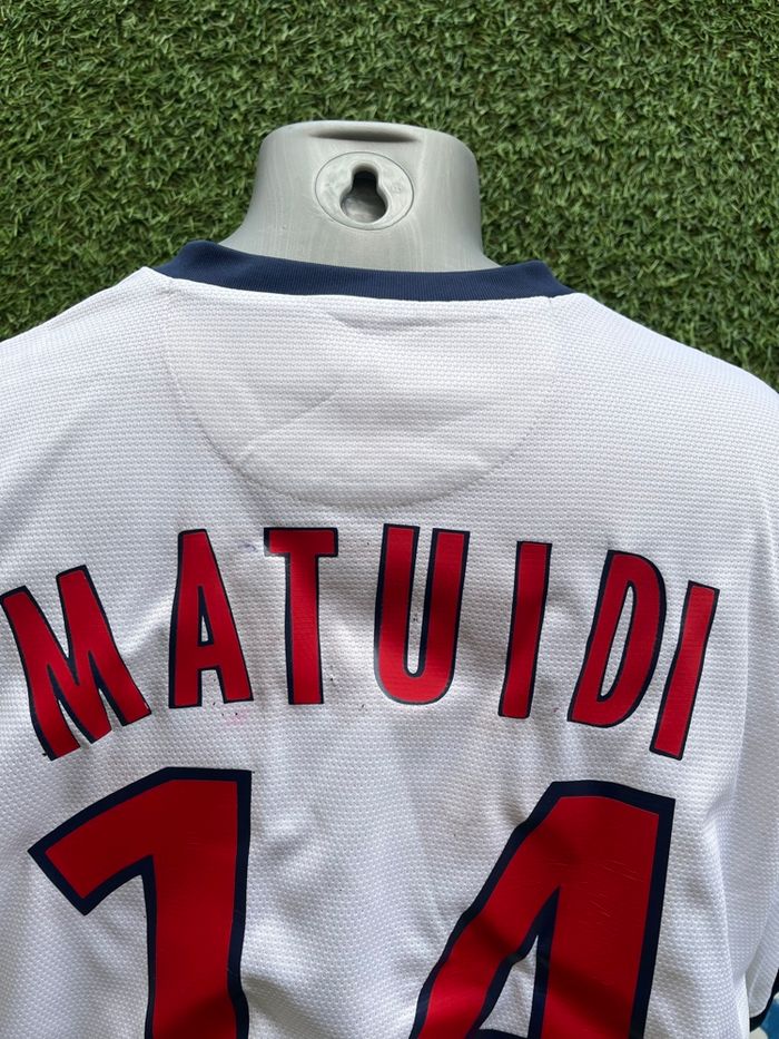 Bonjour Maillot Matuidi PSG Occasion Pour homme Taille L Marque Nike Saison 2013/2014 Authentique Matière polyester Le maillot est en. Très bon état Pas de trou ou tâche à signaler Sponsor avant et flocage joueur au dos en très bon état Maillot extérieur des parisiens pour la saison 2013/2014