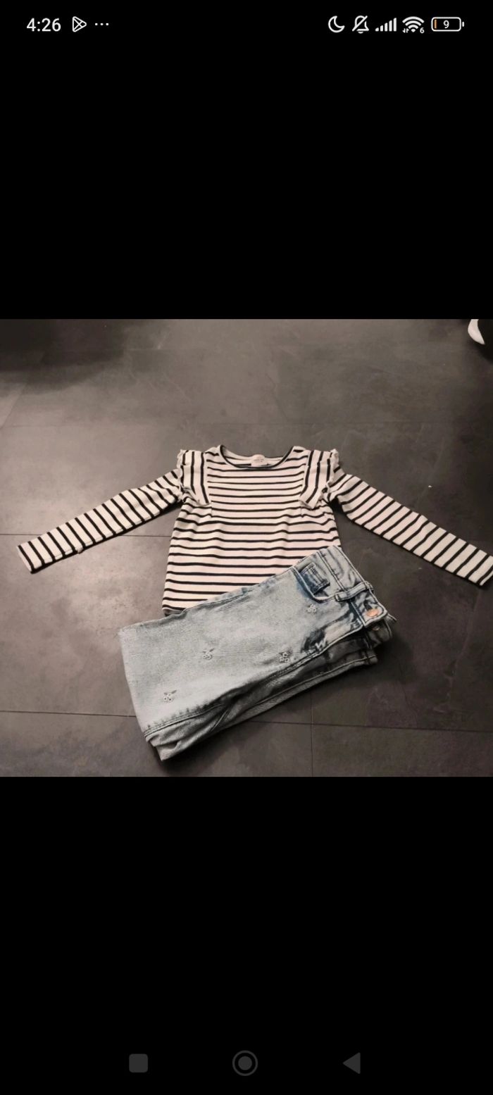 Jean mom fleuri Marinière Neuf sans étiquette