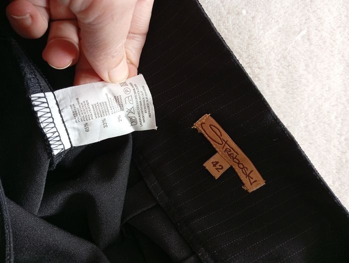 Remise sur lot activé. Jupe couleur noir avec rayures grises en très bon état. Ceinture satiné, se ferme par fermeture éclair sur le côté. Marque : Straboski Taille: 42 ( je trouve qu'elle taille un peu petit, plutôt 40) Mesures approximatives Longueur: 61cm Ceinture: 37cm 65% Polyester 33% Viscose 2% Elasthane #jupenoire4042 #jupenoire #jupestraboski #jupestraboski42 #jupeàrayures