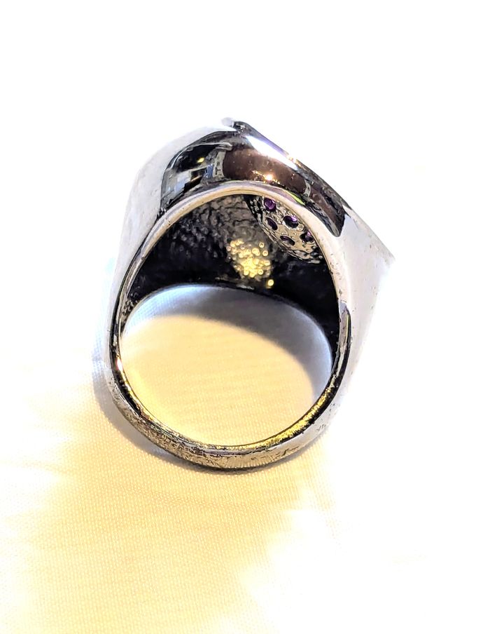 Bague Chevalière Double Ovales Enfoncés Pierres Blanches Roses Strass Bijou Argenté Fantaisie Femmes - photo numéro 3