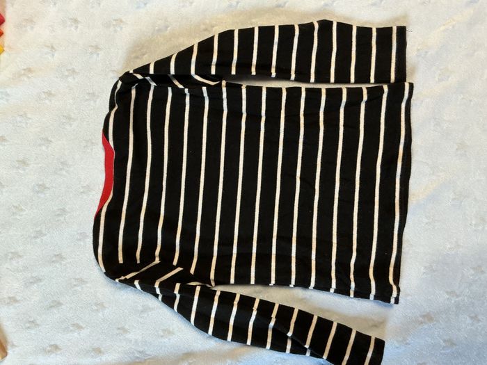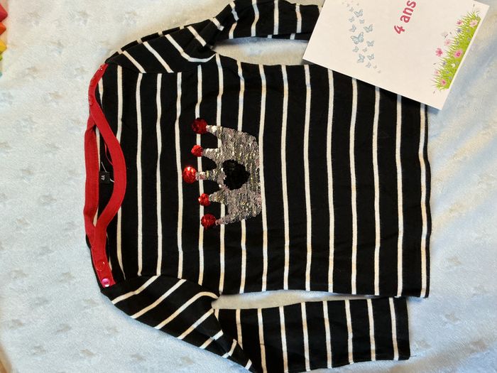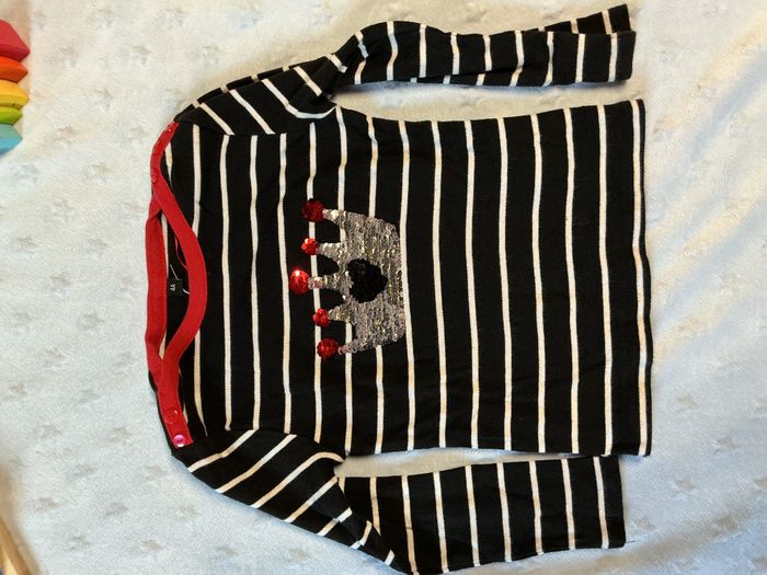 teeshirt manches longues noir rayé blanc dessin en perles à retourner devant 4 ans - photo numéro 1