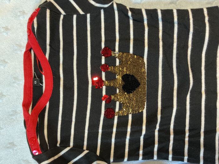 teeshirt manches longues noir rayé blanc dessin en perles à retourner devant 4 ans - photo numéro 6