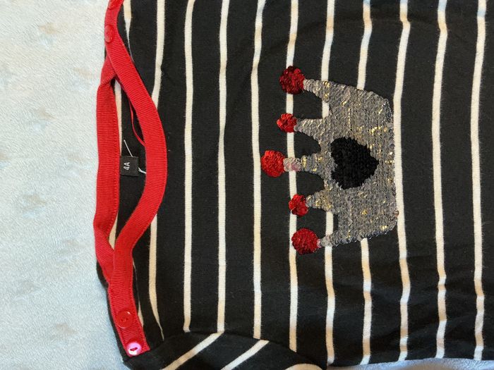teeshirt manches longues noir rayé blanc dessin en perles à retourner devant 4 ans - photo numéro 8