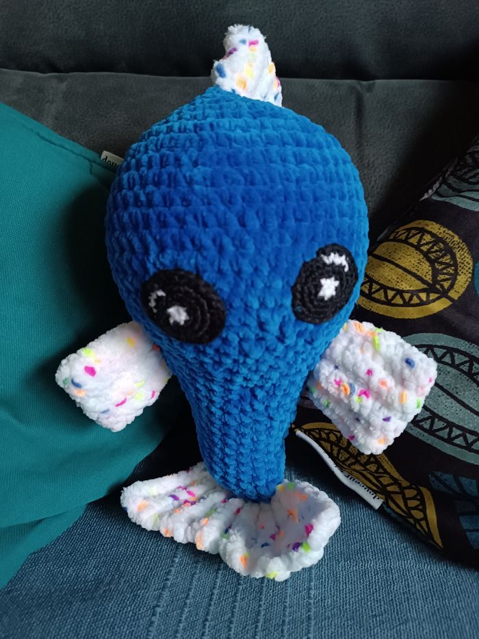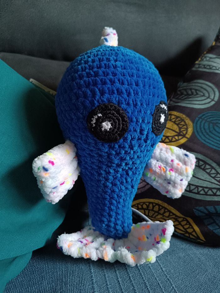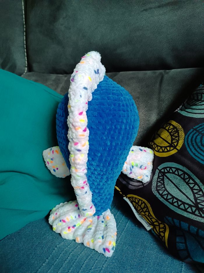 Peluche poisson Bleu et multicolore Fil principal fil chenille 100% polyester Yeux fil 100% coton Rembourrage 100% synthétique Décoration poisson peluche Amigurumi