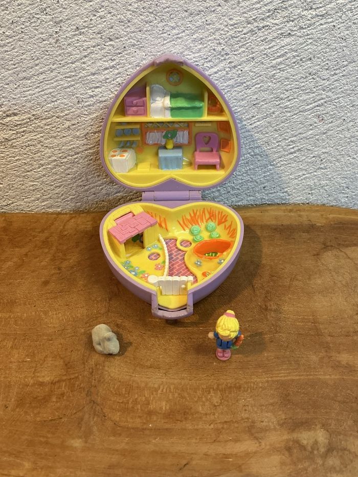 Polly Pocket Pretty Bunnies 1993 bon état vendu avec 2 personnages d origine. Pas de casse ni décoloration mais fermoir montrant des traces d usures voir photo détail. #pollypocketvintage #pollypocketjouetsvintageandco
