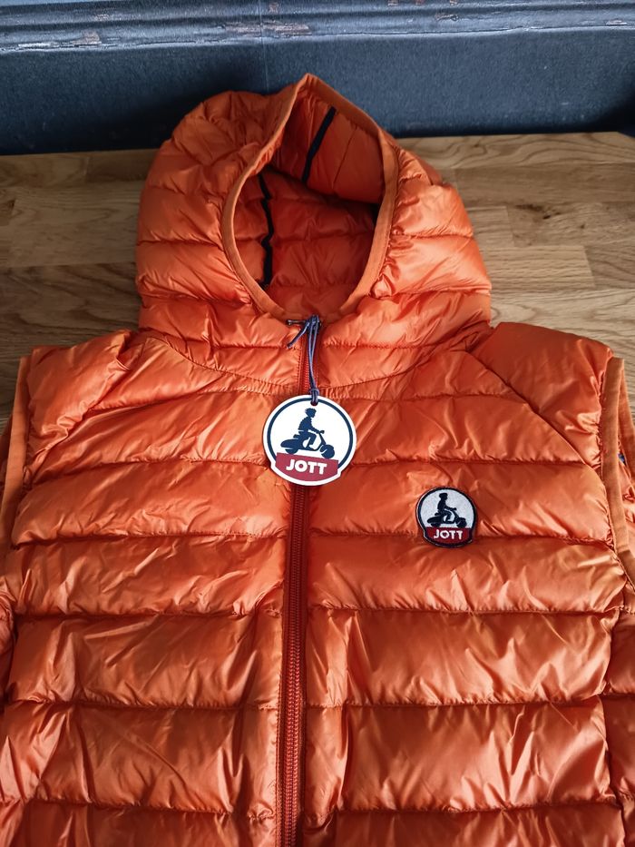 Doudoune sans manche avec capuche, couleur orange, marque Jott, homme taille S neuve Prix 150 euros vendu 85 euros
