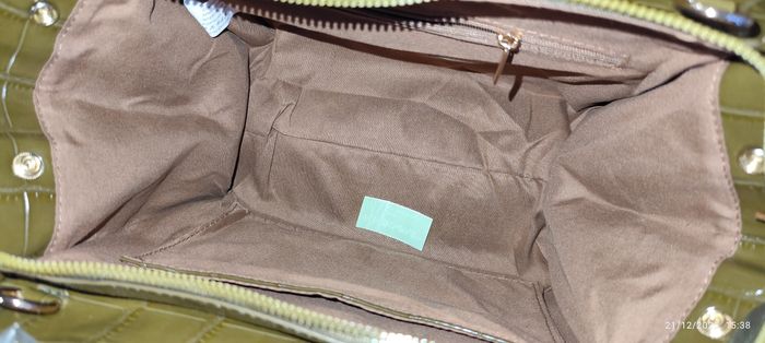 Magnifique sac à main en cuir verni croco de couleur vert olive accompagné de sa bandoulière. N'hésitez pas à me contacter pour plus d'infos