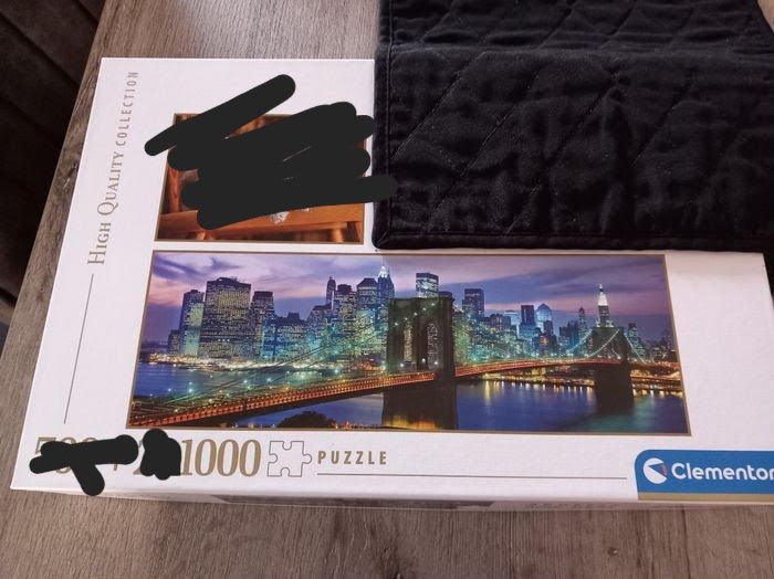 Puzzle panorama 1000 pièces Clementoni neuf New York Brooklyn Bridge La boite a été ouverte et il ne reste qu'un seul puzzle sur les 3, le sachet de pièces n'a pas été ouvert