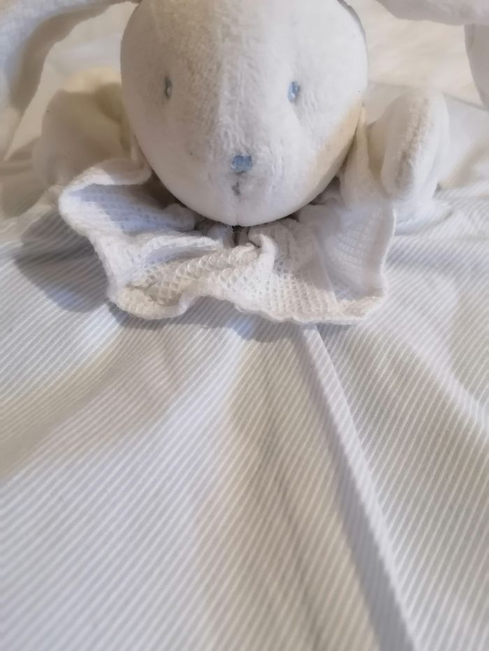 C'est réservé Doudou plat tête de lapin bleu et blanc moulin roty  - photo numéro 2