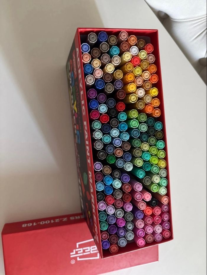 Neuf, utilisé juste pour faire le nuancier que je vous donne avec les feutres. Pointe fines