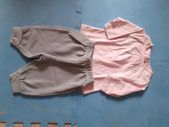 Vends tee-shirt manches longues (boutons pression dos, petite tache au col, voir photo) et jogging, 3mois