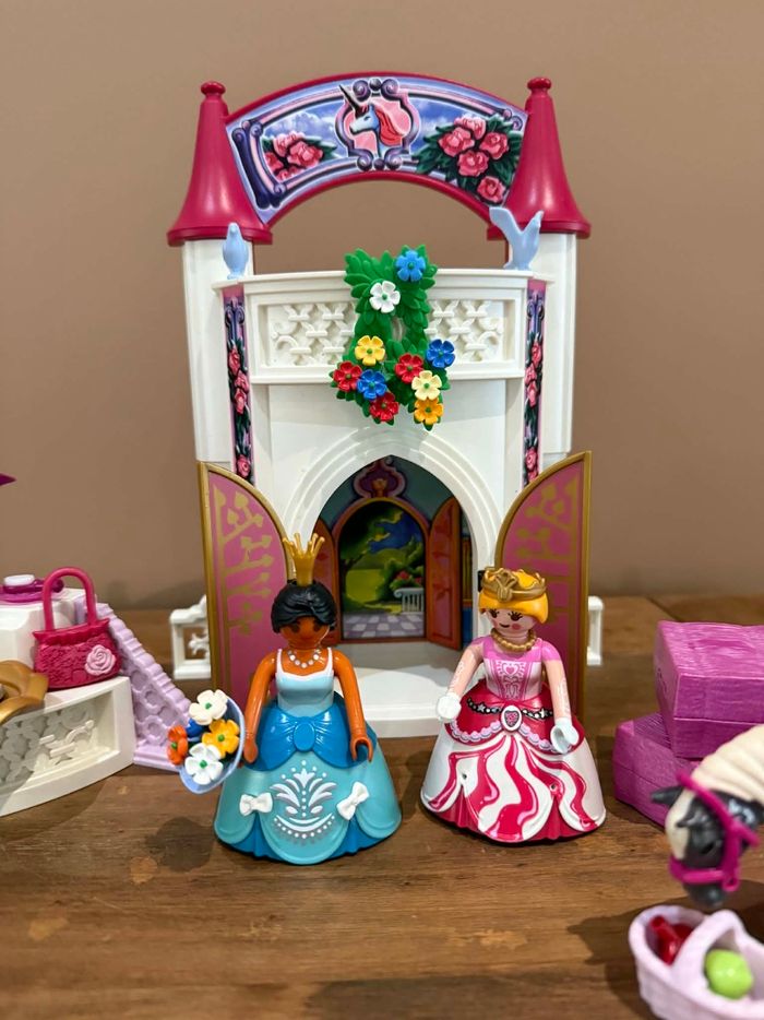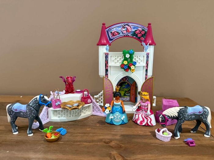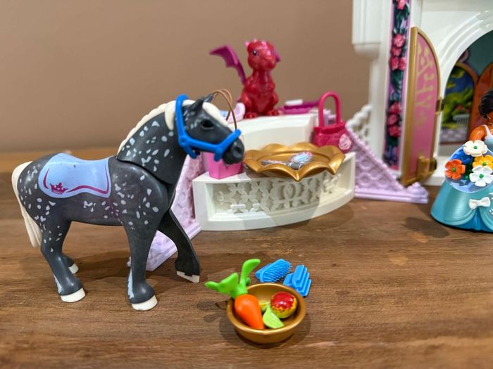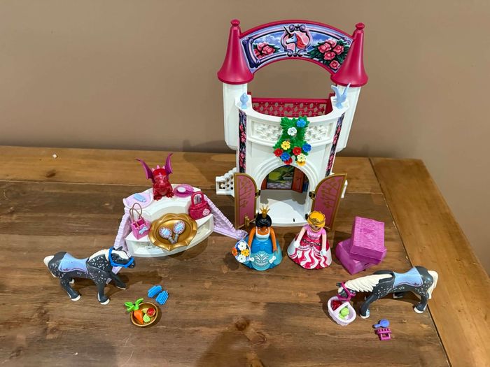 Playmobil Donjon de la licorne transportable 4777 Très bon état Set modifié, rajout de beaucoup d’accessoires, chevaux, princesses, dragon Playmobil Donjon de la licorne transportable 4777