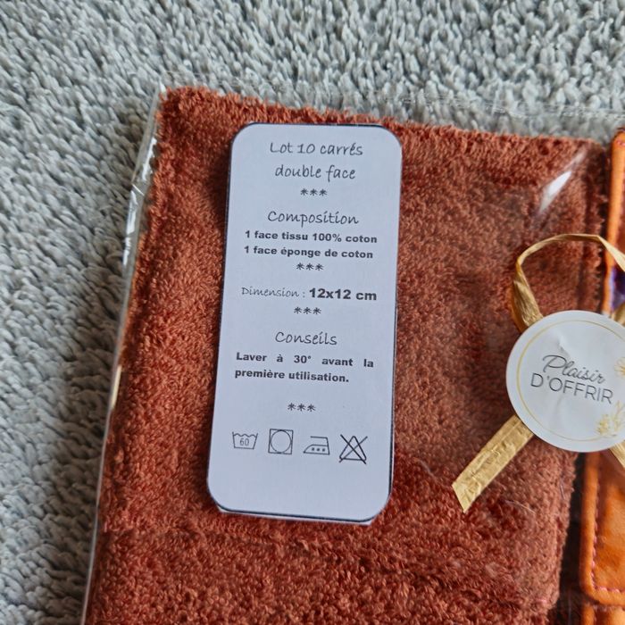 Lot 10 lingettes double face un côté tissu 100%coton motif fleuri et un côté éponge de coton brique lavables jusqu'à 60 degrés Taille 12x12 cm Neufs jamais utilisés Achetez en lots réduction automatique à partir de 3 articles