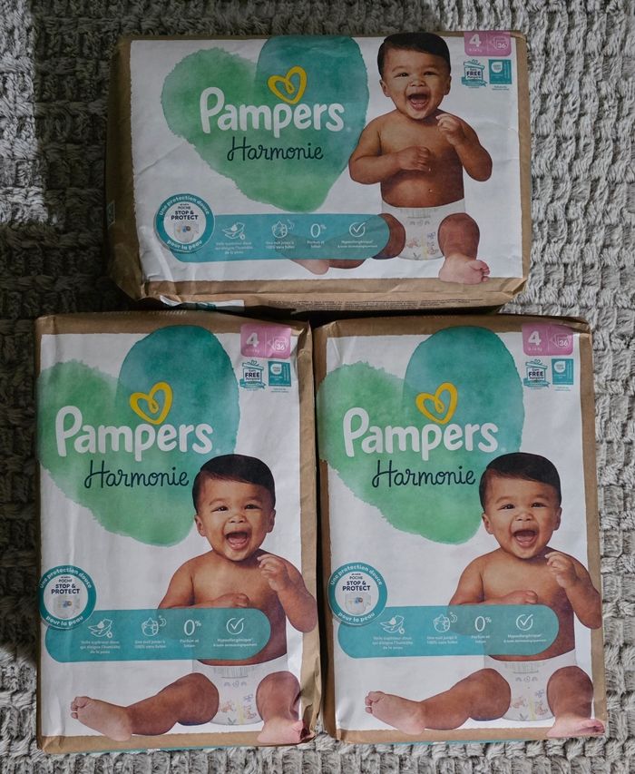 3 paquets de couches Pampers Harmonie taille 4