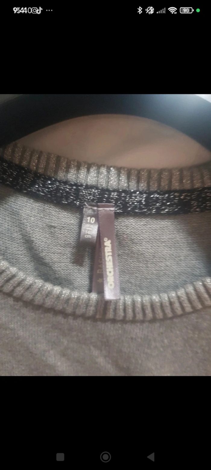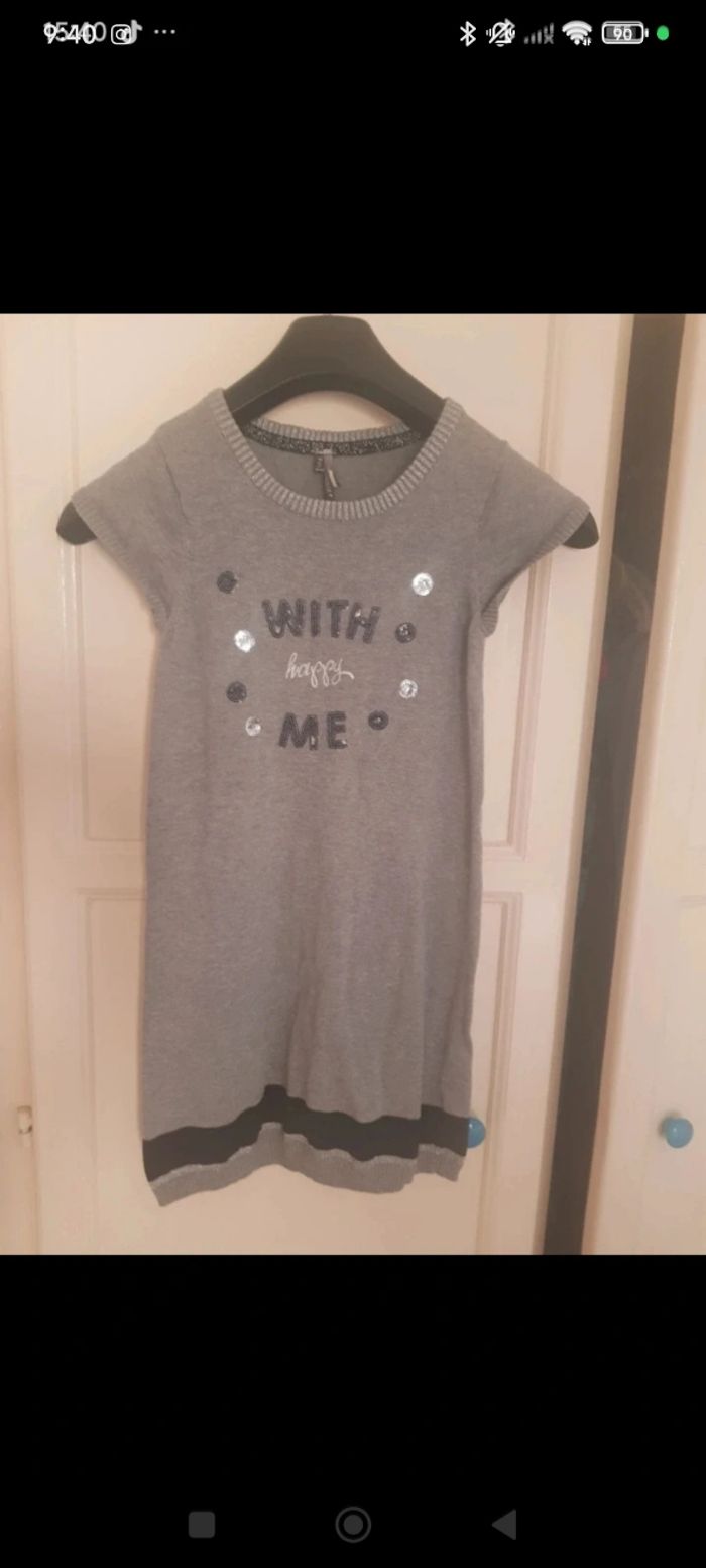 Robe pull fille grise taille 10 ans, manches courtes, de marque Orchestra, très bon état. Col légèrement brillant.
