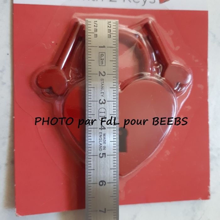 Cadenas en métal - rouge - en forme de cœur avec 2 clés (en forme de cœur aussi) Etat NEUF Prix préférentiel pour 1 lot de 2 cadenas = 8 € Achat à l'unité possible = 5 € pièce NB : si vous n'en souhaitez qu'un seul, contactez-moi pour la modification de l'offre ☺️ Dim : 6 cm (voir ma photo N°2) Poids unitaire : 45g env. NB : Le haut du contenant est coupé mais l'article est toujours sous emballage. Idée cadeau - ID KDO ❤️ Saint-Valentin Fête des Mères Fête des Amoureux Amour, toujours... ❤️ Envoi rapide et soigné ! A bientôt, KS