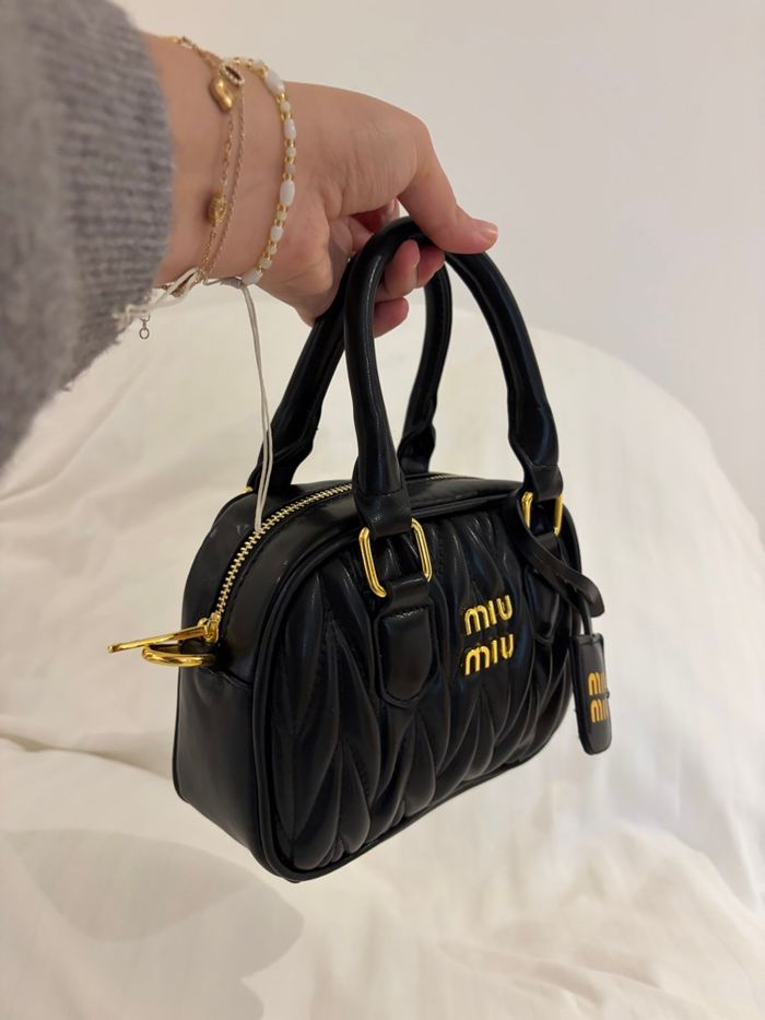 Sac à main miu miu matelassé en cuir noir en très bon état  - photo numéro 1