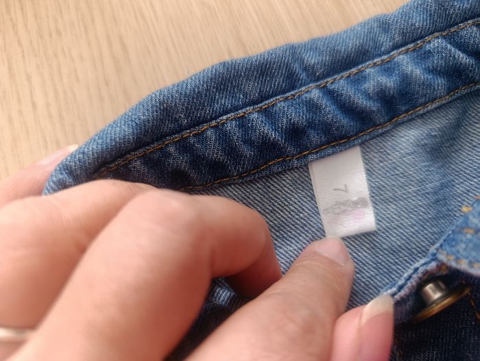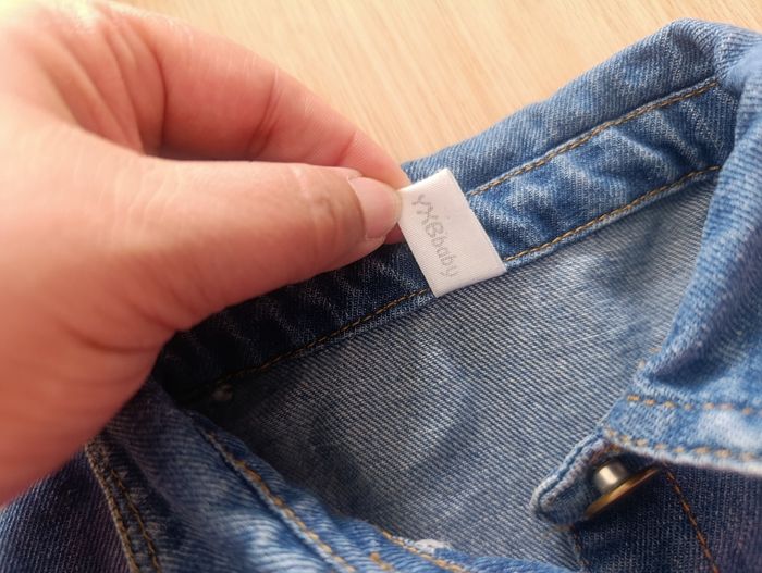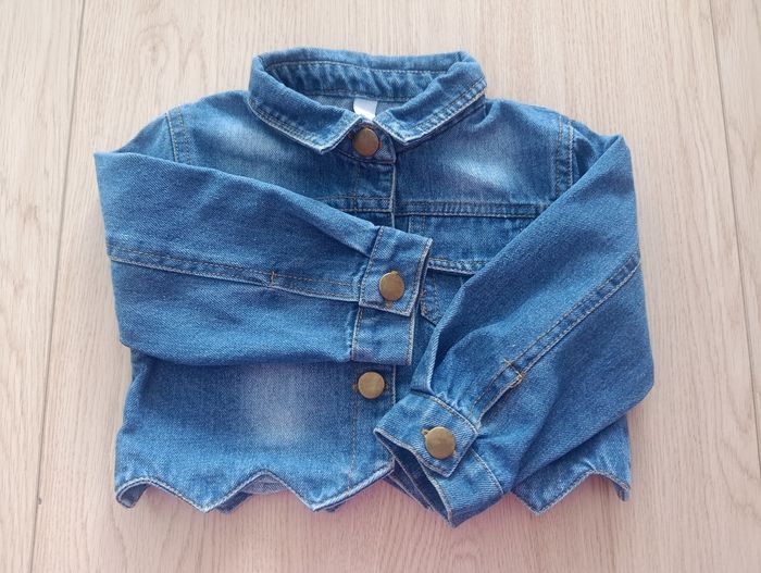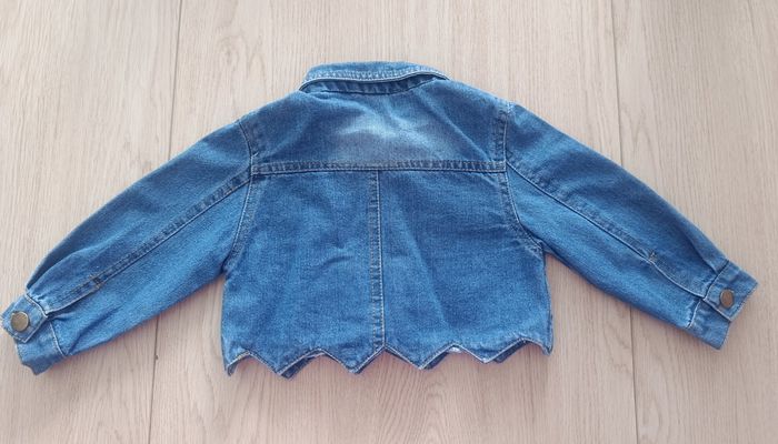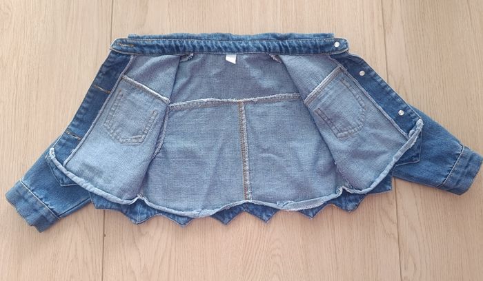 Veste en jean , courte. Se ferme par boutons boutonnière. 2 petites poches. Écrit 7 sur l'étiquette, taille comme du 4 ans. (Mesures sur demande) Marque : YXBbaby , taille "7" ( 3/4 ans)