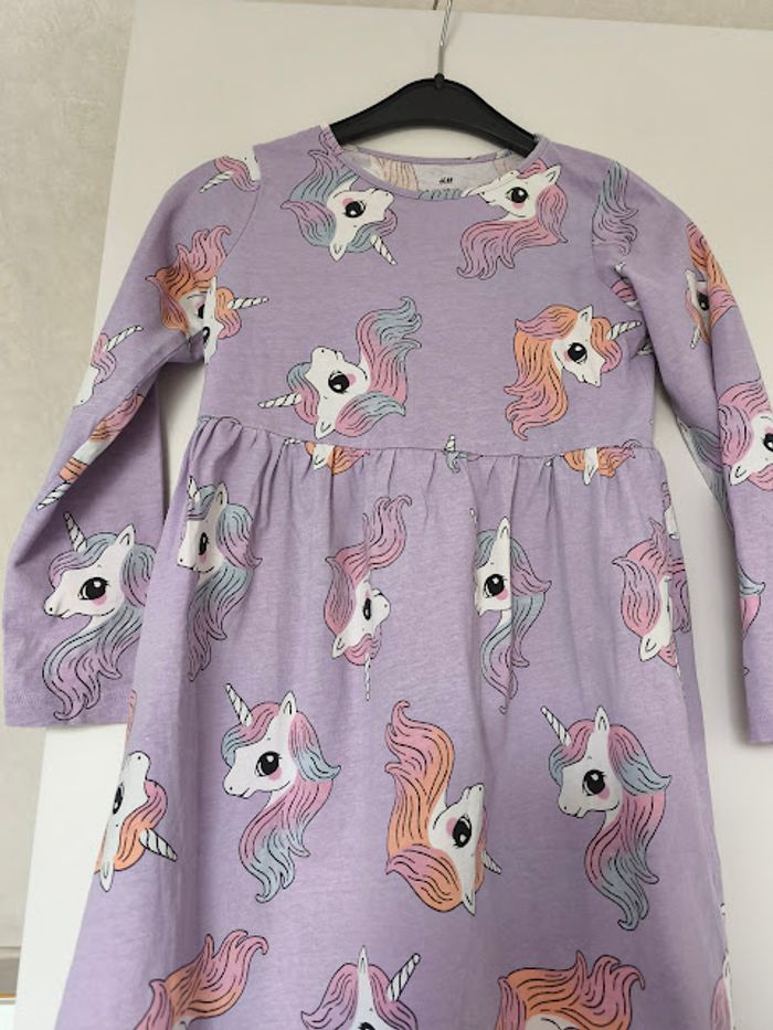 Robe motif licorne, 100% coton, 122/128 cm, 6-8 ans