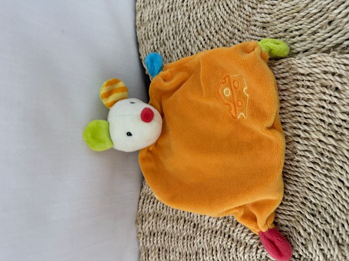 DOUDOU PLAT BABY CLUB SOURIS ORANGE JAUNE VERT BLEU FROMAGE - photo numéro 1