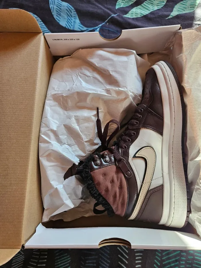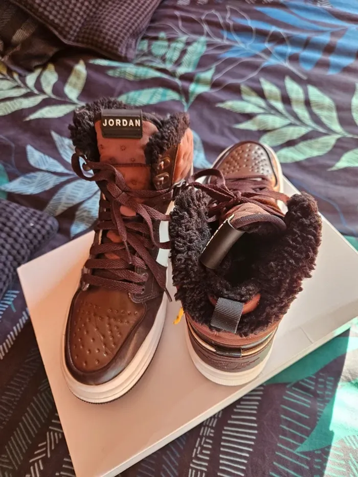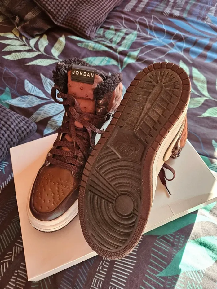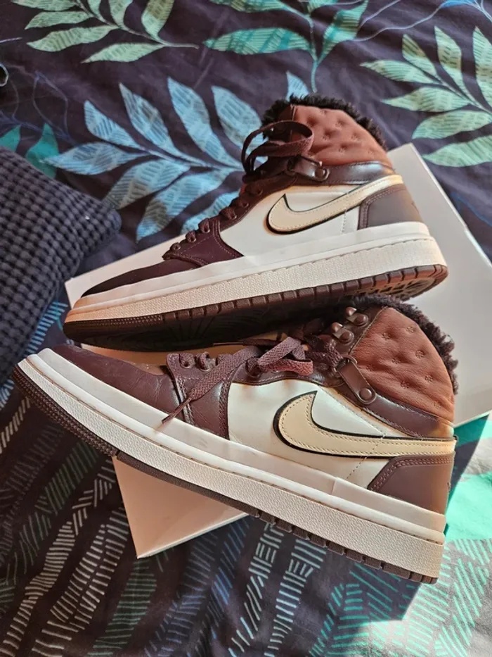 Magnifique paire de Jordan 1 Acclimate portées 1 fois. Couleur marron et beige, fourrées. Pointure FR 40,5 Ref article : DC7723-200 Avec boîte d’origine. 📦
