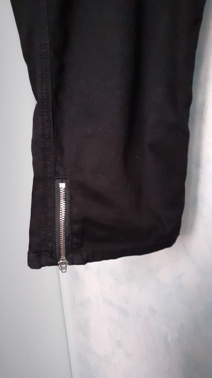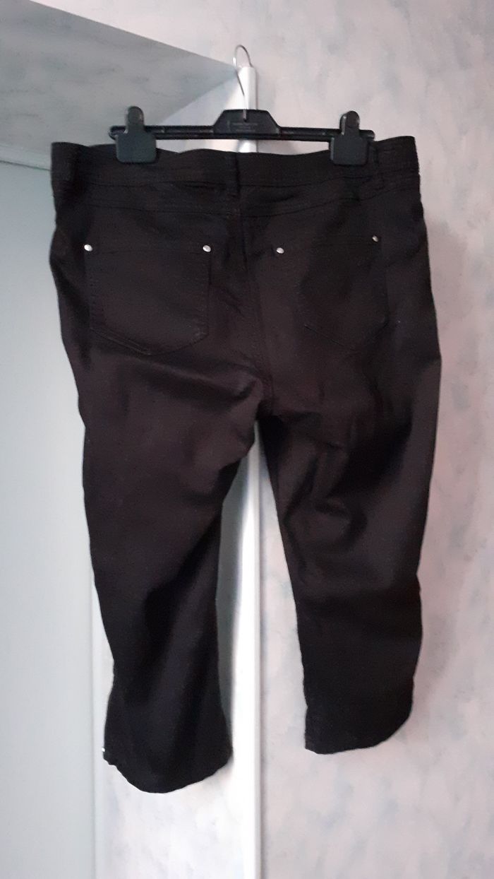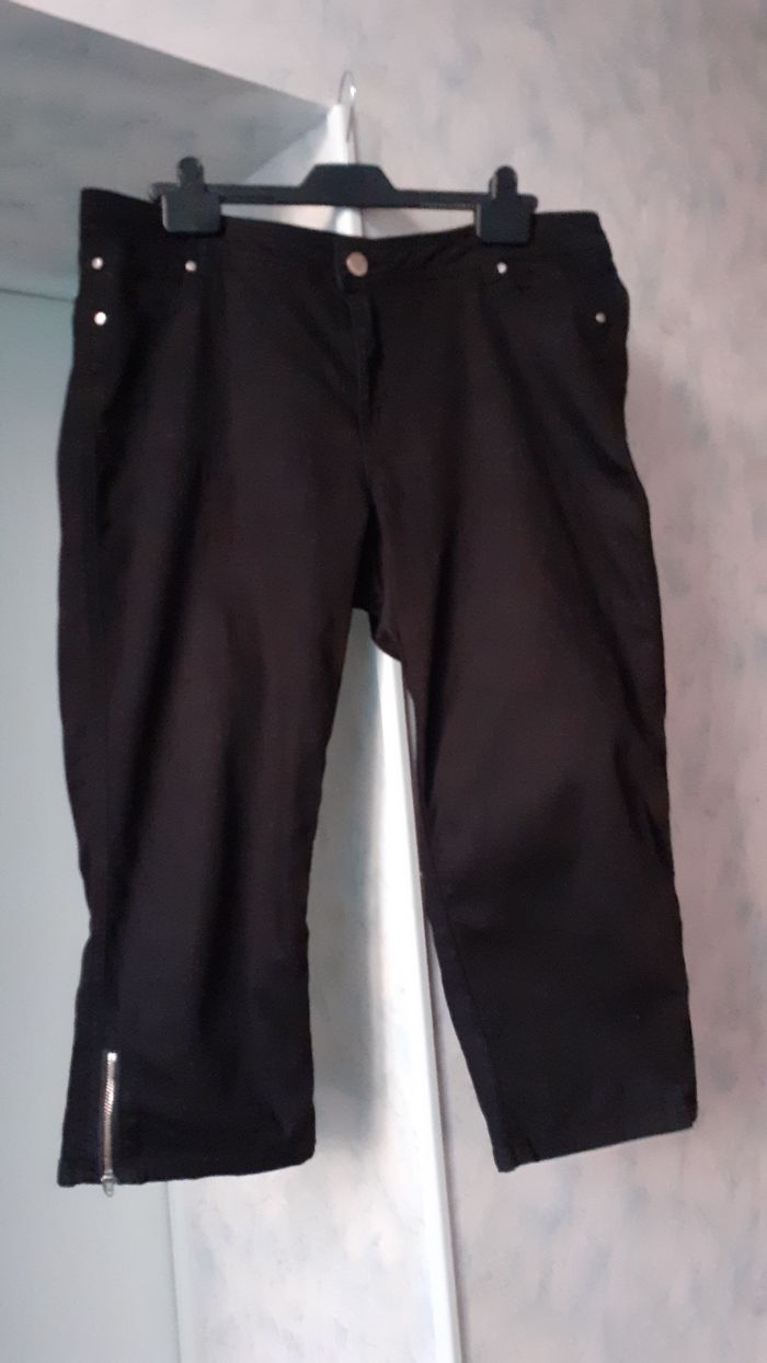 Vends un pantalon corsaire en toile, épais, 72 % coton, 25 % polyester, 3 % élasthanne, fermetures éclair au bas des jambes, couleur noir uni, marque Yessica, taille 46. Longueur entrejambe : 51 cm Largeur de la ceinture à plat : 47 cm Largeur au niveau des hanches : 54 cm.