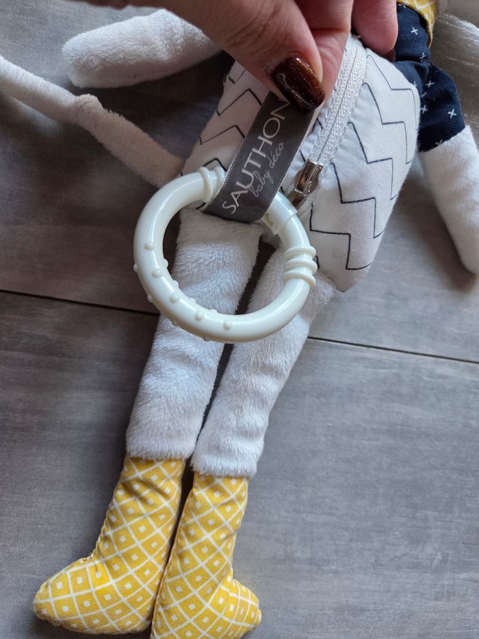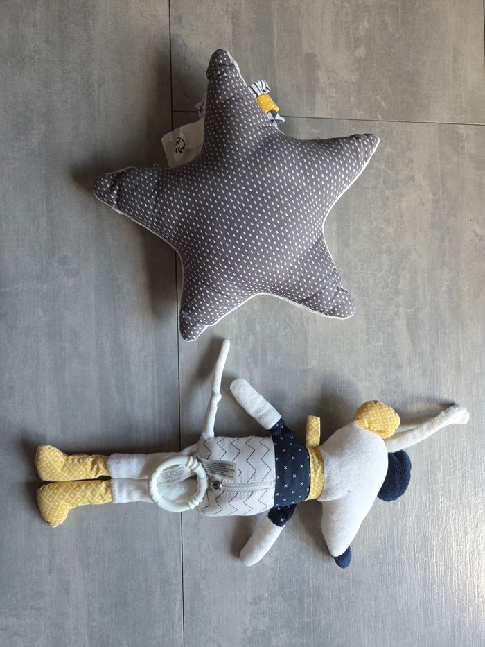 En très bon état 1 peluche musicale Sauthon Étoile et souris 🐁 Jaune et bleu marine