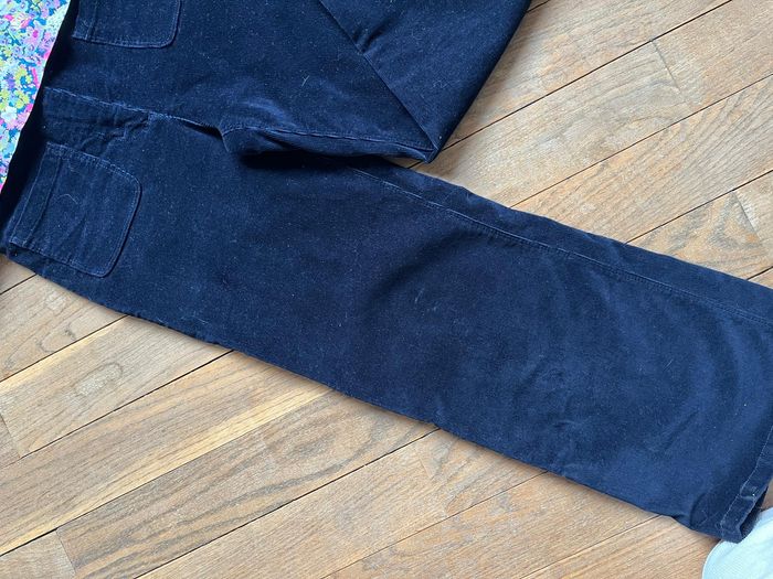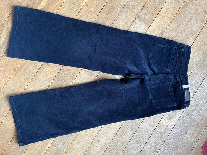 Pantalon velours marine, coupe sailor (jambes larges). Excellent état, avec juste une très très légère marque sur un genou, montrée en photo 7 _ ne se voit pas vraiment, mais je préfère le notifier.
