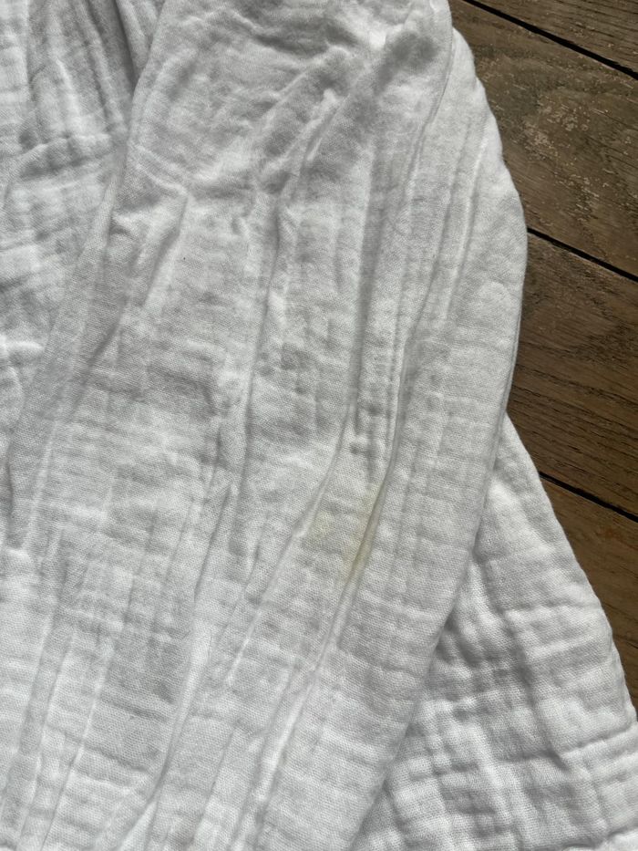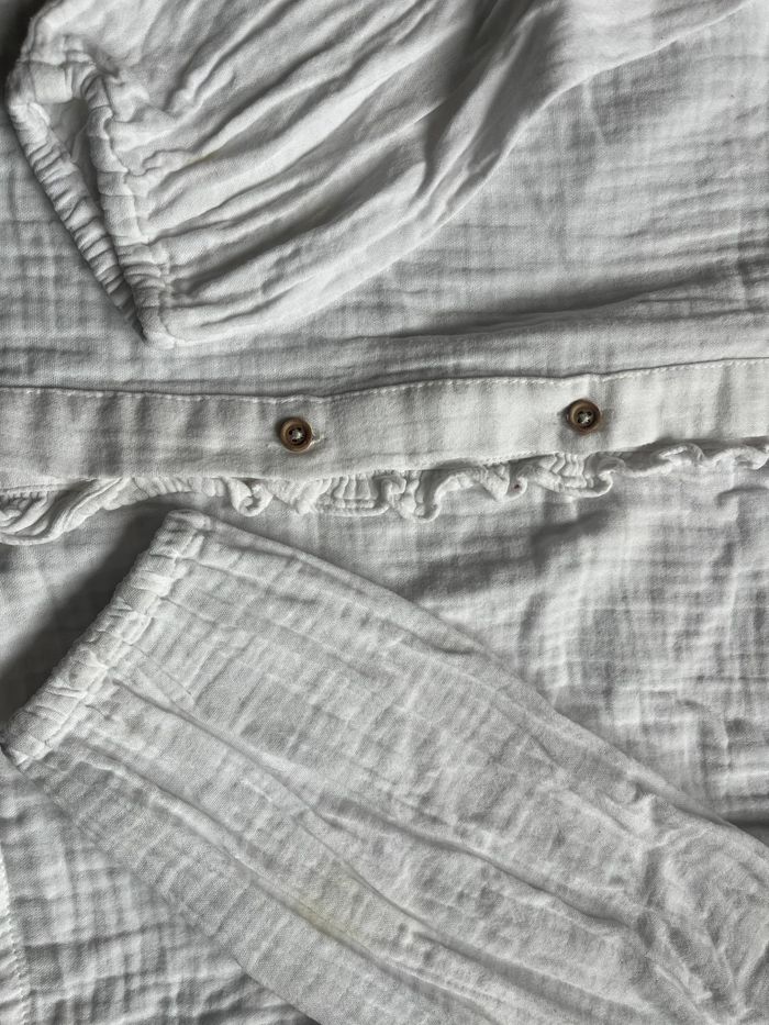 Blouse manches longues en gaze de coton Très bon état, à part une tache sur la manche gauche, montrée en photo