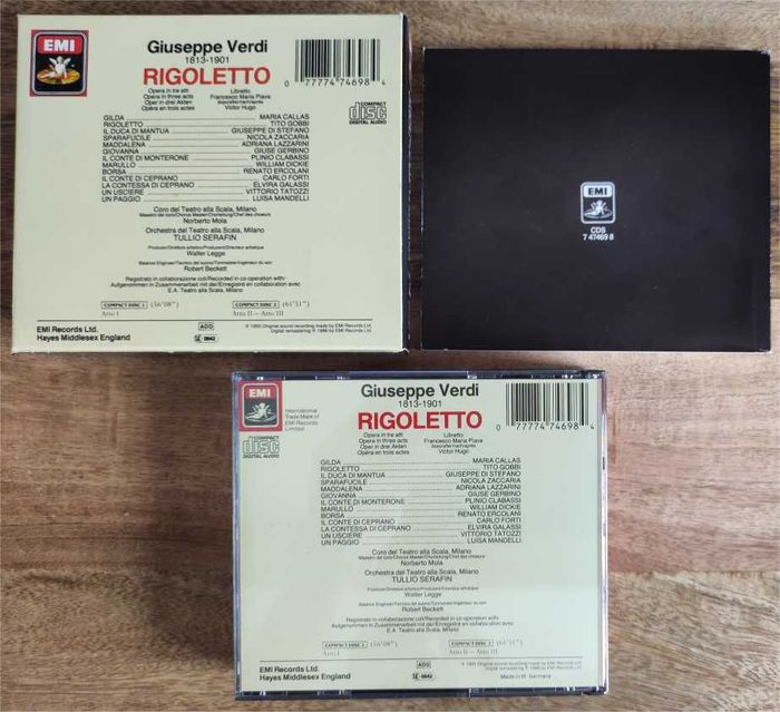 🎵 Giuseppe Verdi Rigoletto 🎵 Maria Callas, Giuseppe di Stefano, Tito Gobbi, Tullio Serafin Orchestra e Coro del teatro Alla Scala Coffret 2 disques + livret 134 pages Maison de disque - EMI .