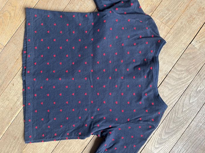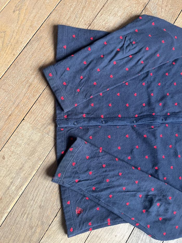 Gilet marine à coeurs rouges, un peu épais. Excellent état