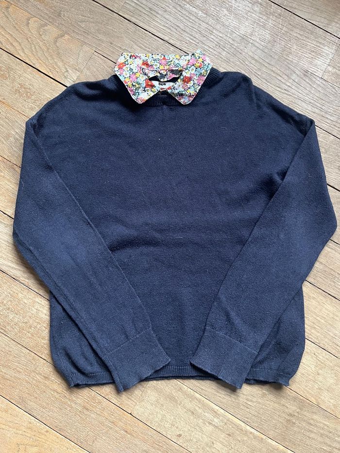 Pull en maille marine, avec col liberty amovible Porté, bon état