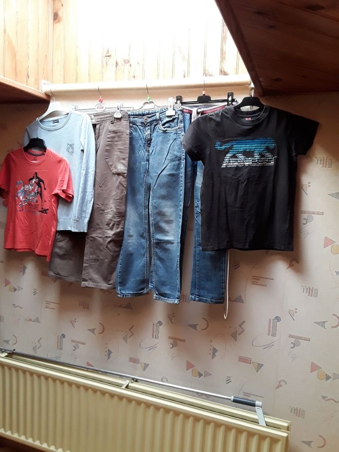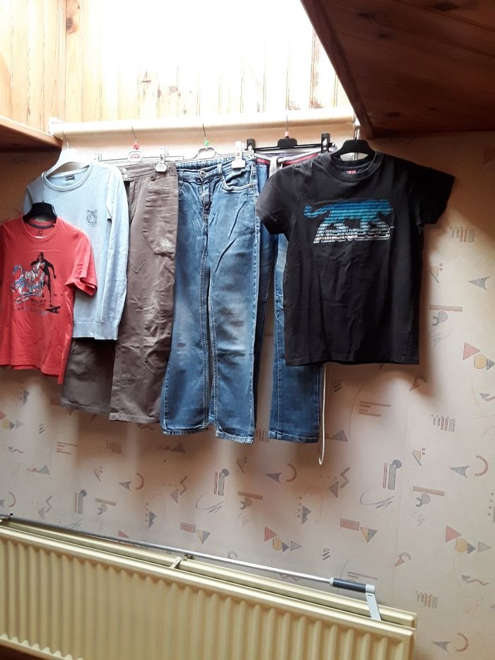 Lot de vetements garçon 10ans 2 jean 1 pantalon marron petite tache voir derniere photo 1 pull bleu ciel in extenso 1 t shirt noir airness 1 t shirt orange Pepperts Les t shirt sont manches courtes Le tout pour 12e
