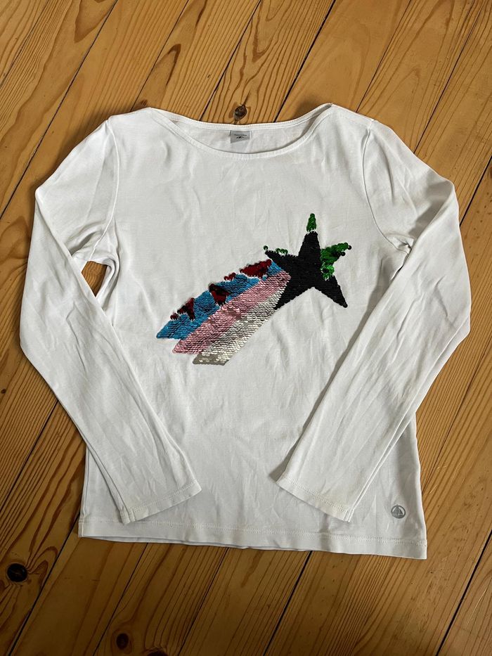 Tee-shirt à manches longues blanc à sequins Porté, bon état
