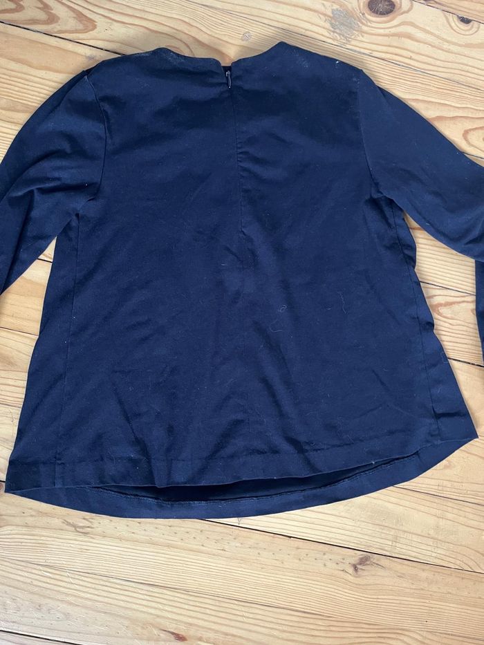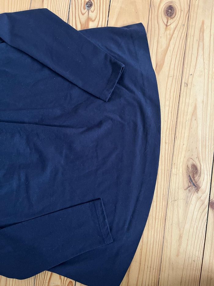 Tee-shirt à manches longues marine avec nœud sous le col. Couple ample. Peu porté, très bon état Étiquette de taille coupée