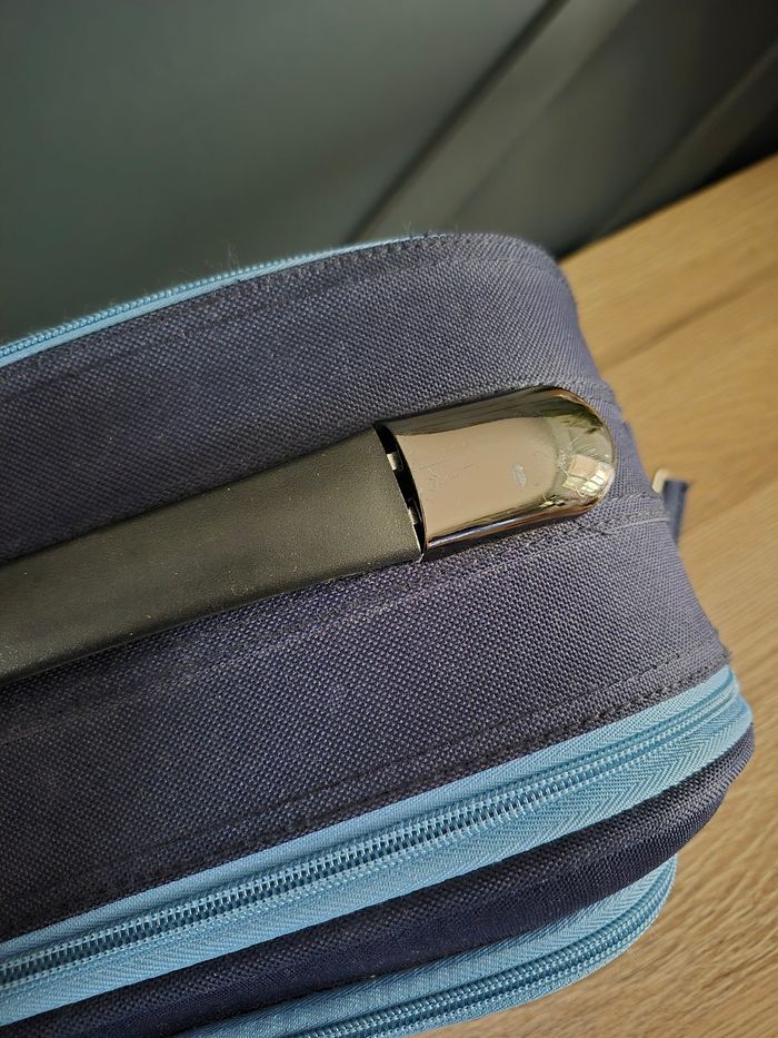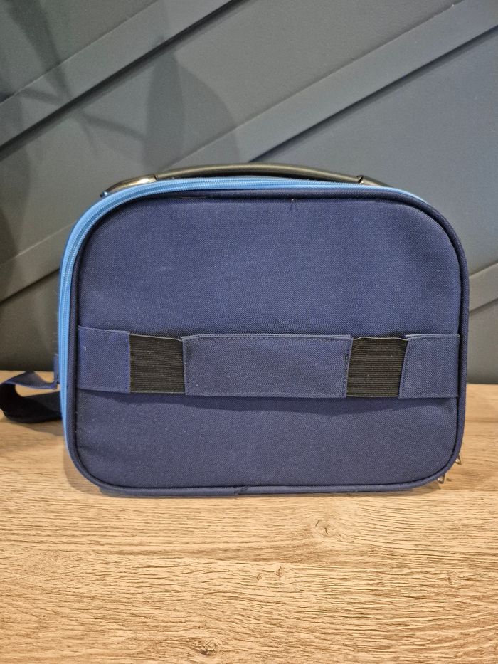 Dimensions : 30 x 15 x 15 cm Très peu utilisé, en très bon état Miroir amovible Séparation amovible pour laisser plus de place d'un côté ou de l'autre Ouverture par les deux côtés, via des fermetures éclairs Bandoulière réglable et optionnelle (elle peut être retirée) Grande poignée sur le dessus Pochette à l'avant
