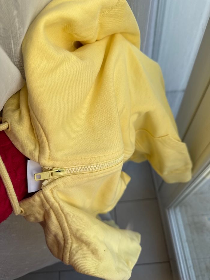 La couleur sur les photos n’est pas exactement représentative il est vraiment jaune sur la dernière photo la couleur est plus proche ! Neuf jamais porté mais présente deux petits défauts voir photos Envoi rapide et soigné