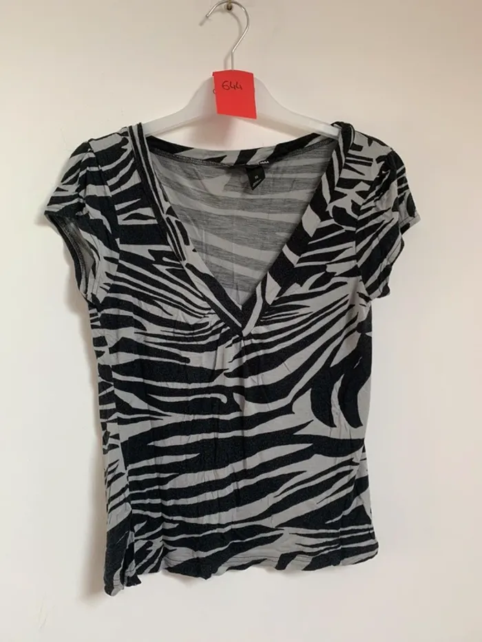 Ma petite friperie vous propose ce haut zébré, manche courte avec col V. #article644