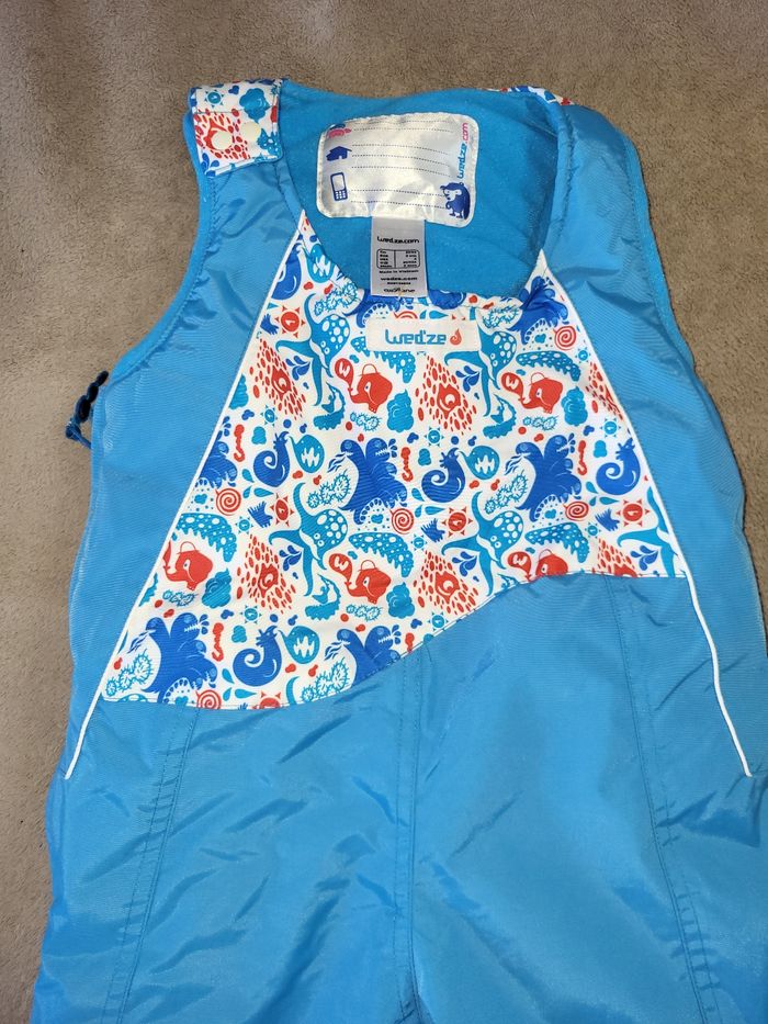 Salopette pantalon de ski bleu à motifs mixte Oxylane Wedze 2 ans 24 mois Le côté droit s'ouvre entièrement pour faciliter l'enfilage Élastiques sous les pieds #virgy61garcon24mois #virgy61fille24mois