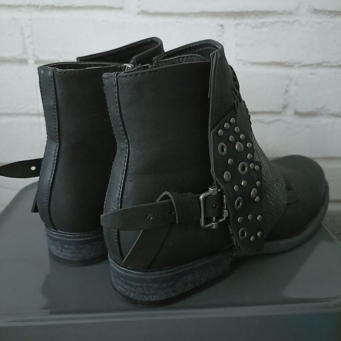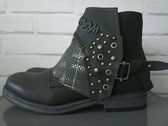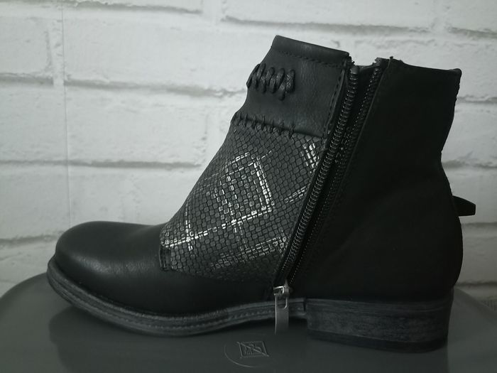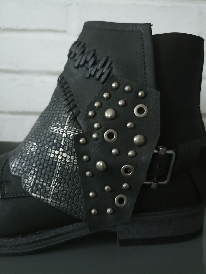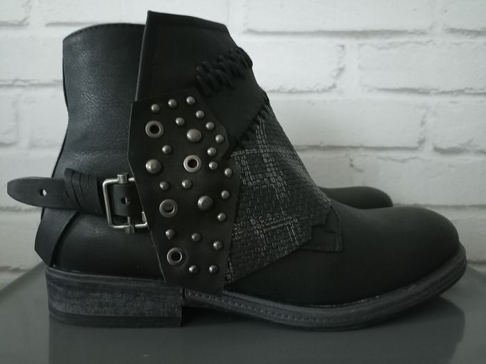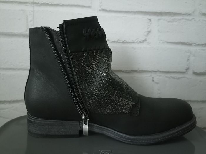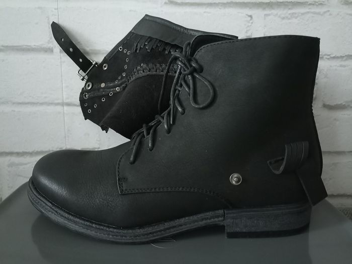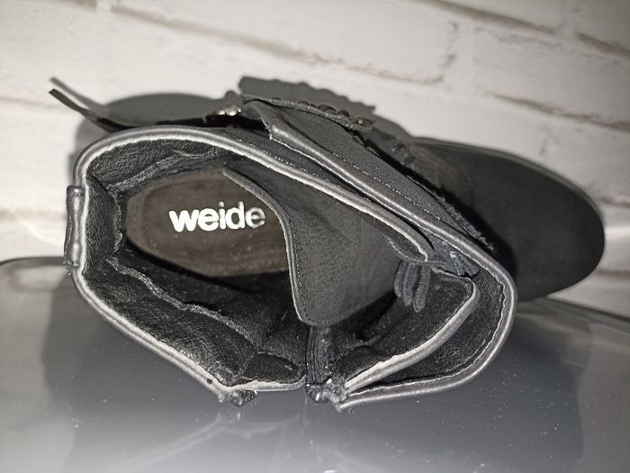 Paire de Bottines femme Lacets + fermeture éclair Dessus: synthétique Coloris : noir Pointure : 38 Marque : WEIDE Valeur : 49€ Confortable. Jamais portées.