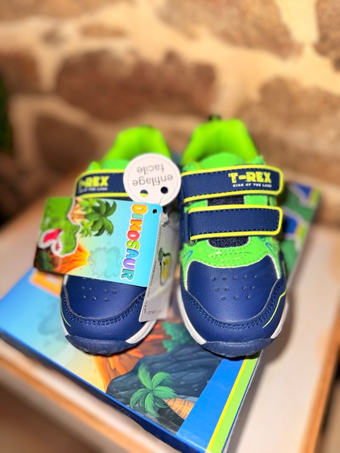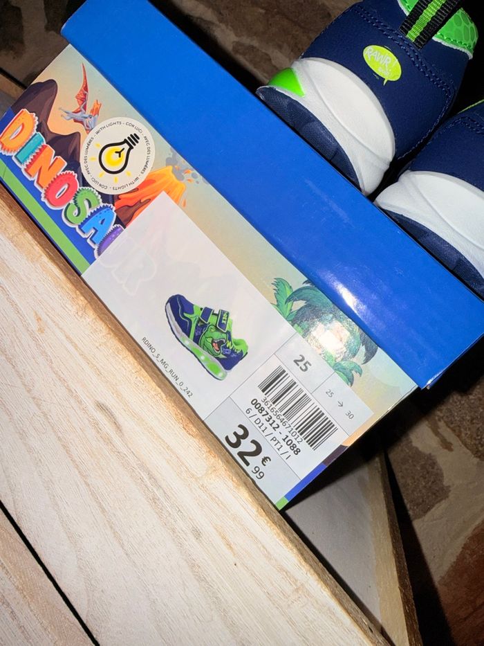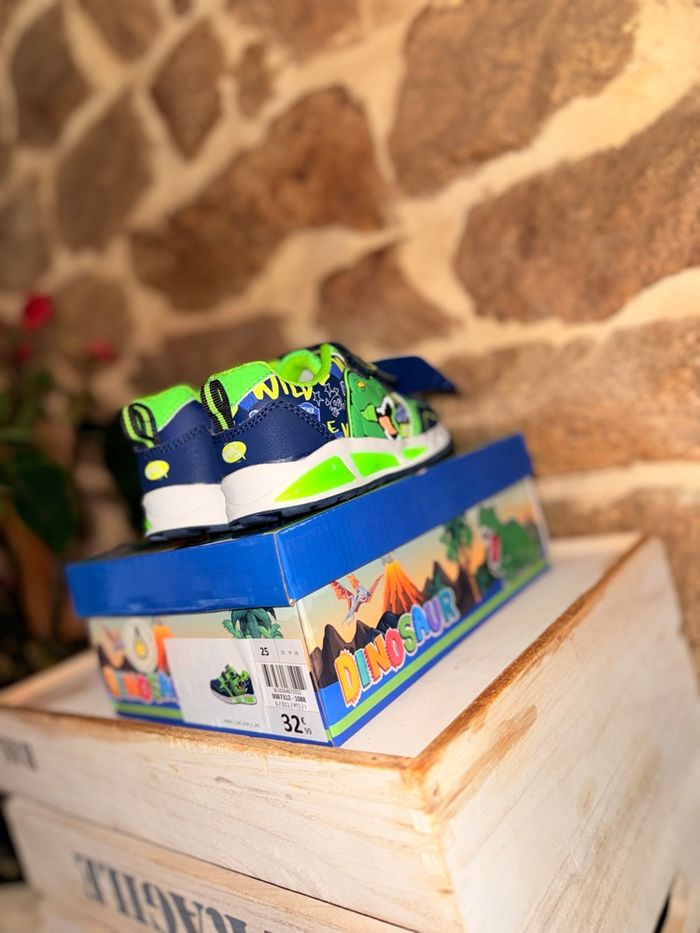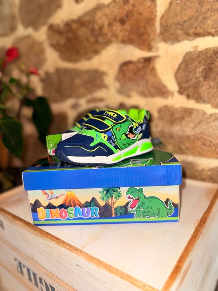 Baskets Dinosaures Lumineuses (Neuves) État : Neuf avec étiquette Prix boutique : 32,99 € Superbes baskets T-Rex style Jurassic Park ! • Ultra lumineuses : La semelle ET les yeux du dinosaure s'éclairent intensément à chaque pas. Vendu avec sa boîte d’origine. État impeccable, jamais portées. #dinosaure #jurassicpark #trex #basketslumineuses #chaussuresgarcon #neufavecetiquette