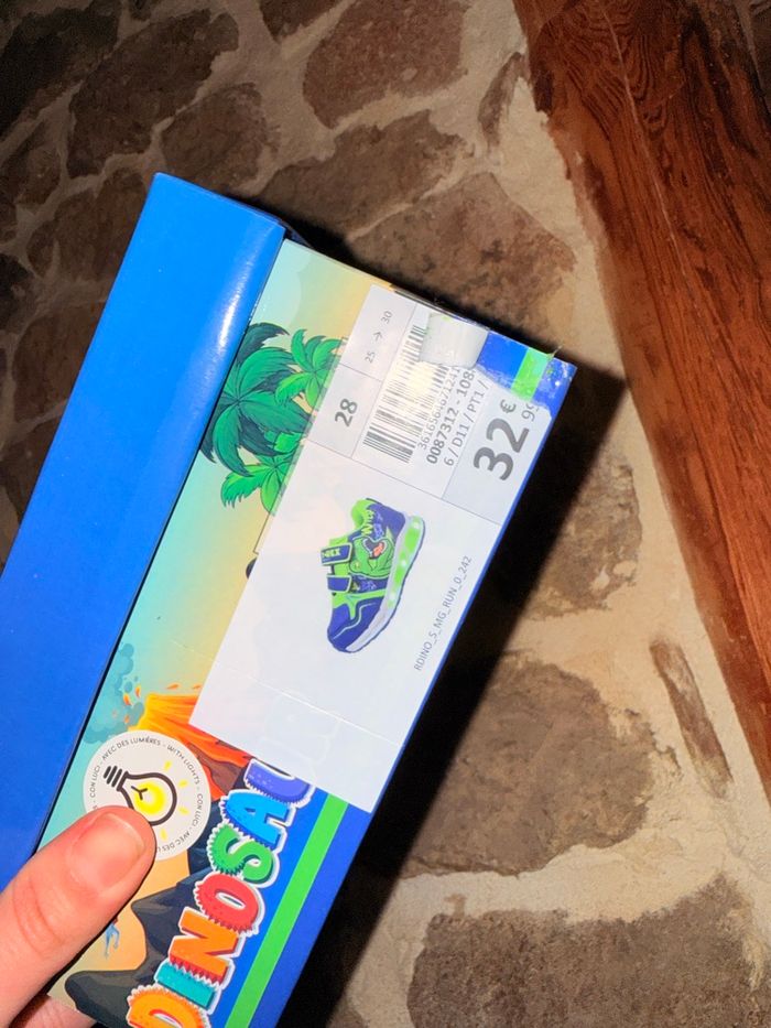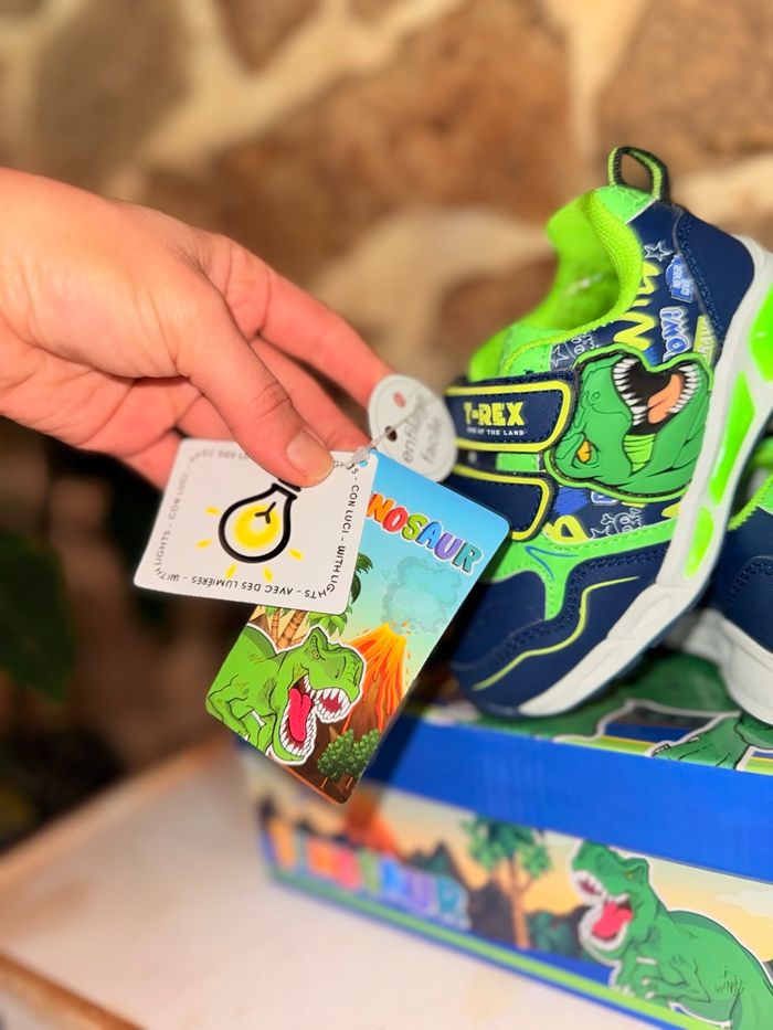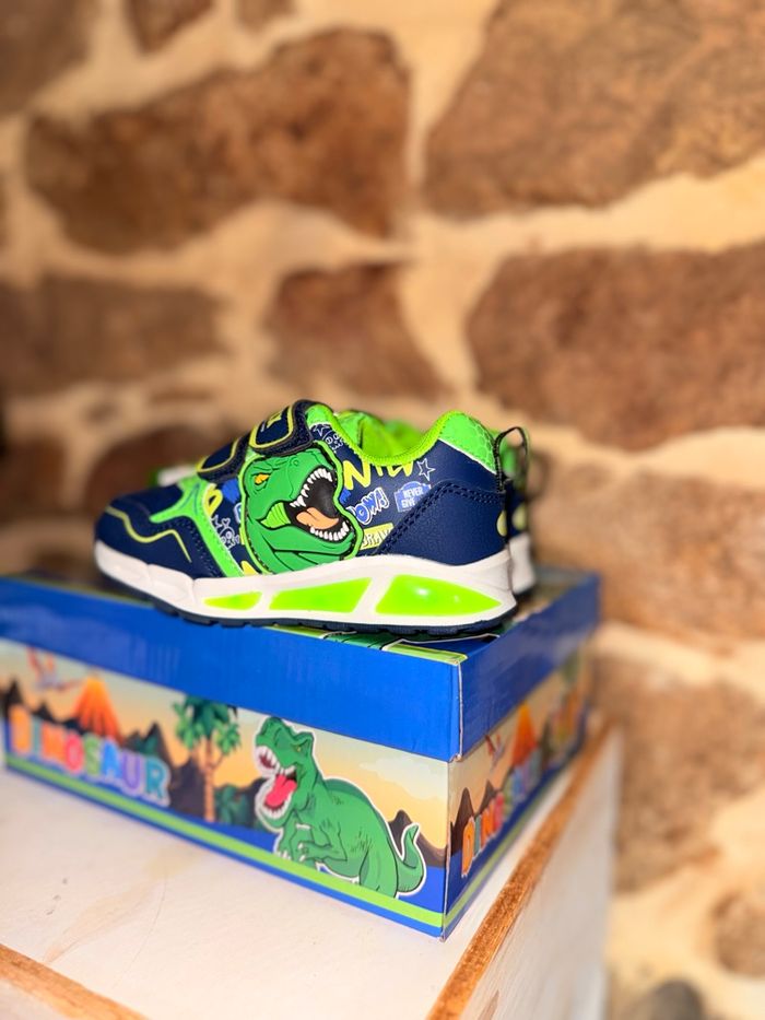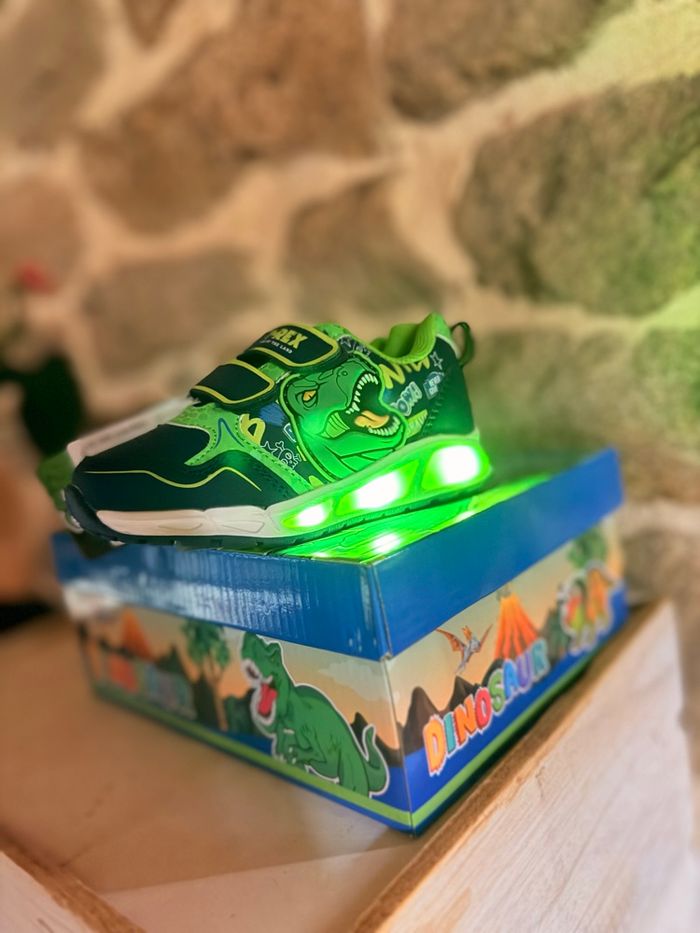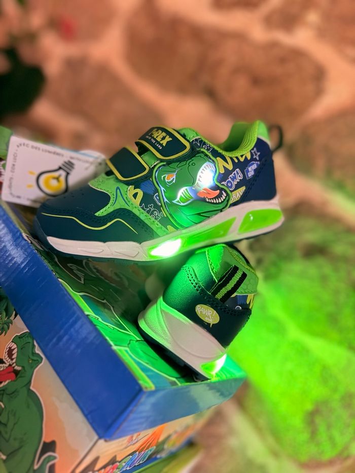 Baskets Dinosaures Lumineuses (Neuves) État : Neuf avec étiquette Prix boutique : 32,99 € Superbes baskets T-Rex style Jurassic Park ! • Ultra lumineuses : La semelle ET les yeux du dinosaure s'éclairent intensément à chaque pas. Vendu avec sa boîte d’origine. État impeccable, jamais portées. #dinosaure #jurassicpark #trex #basketslumineuses #chaussuresgarcon #neufavecetiquette